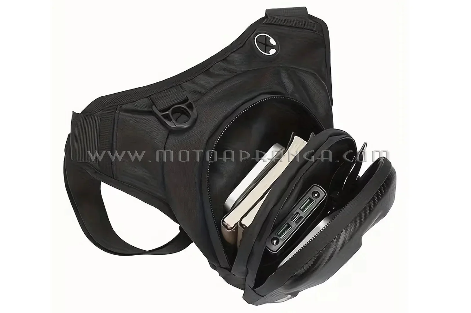 Motorcycle bag on the leg